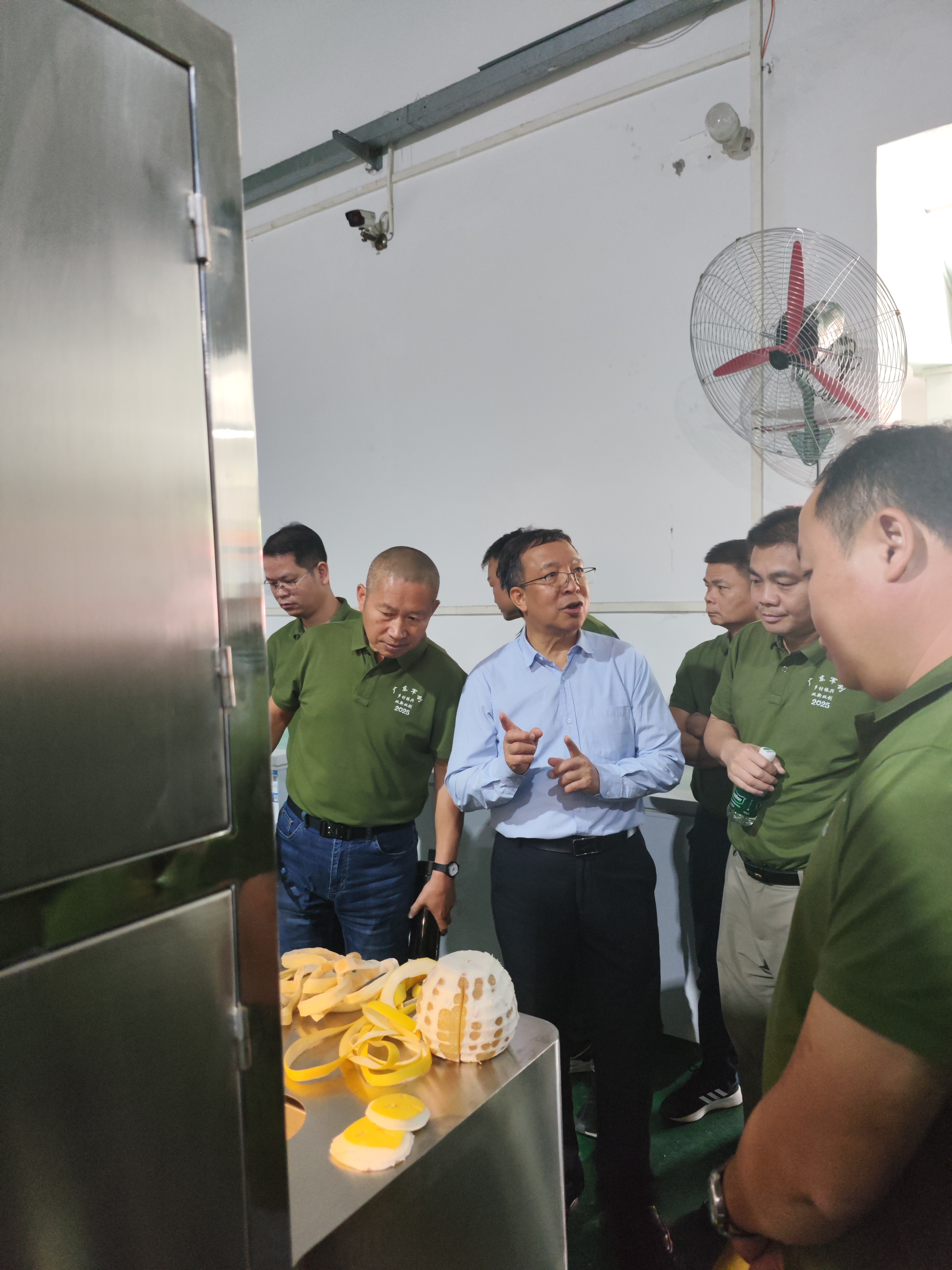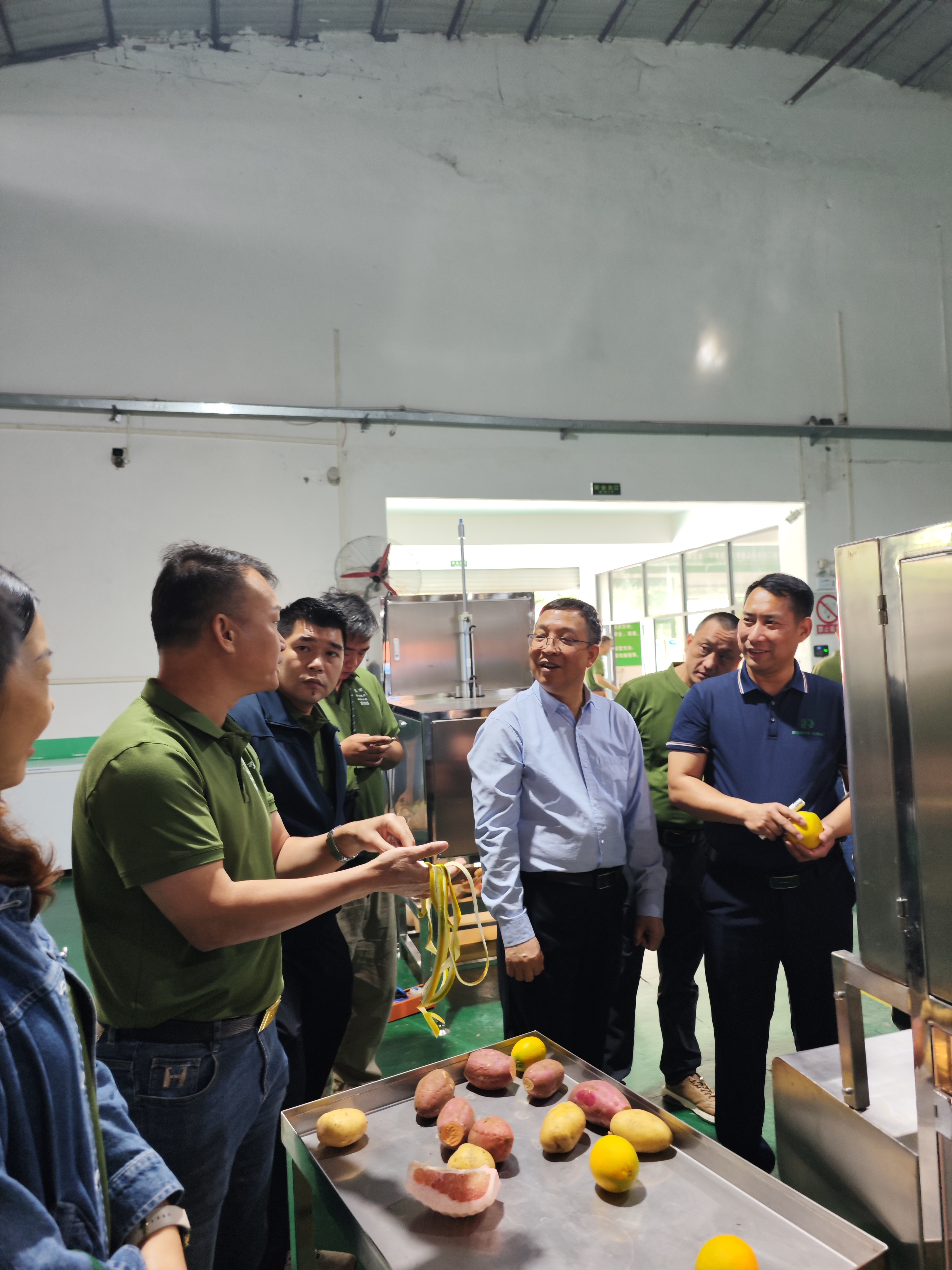 机器声中瓜果香,振兴乡村同心干。2025年10月28日,广东退役军人培训班30多名师生来厂实习,广州达桥董事长杨李益教授专门备课讲解和分享创业经验,工程师们专门表演和讲解瓜果削皮、抠粒、切片机。